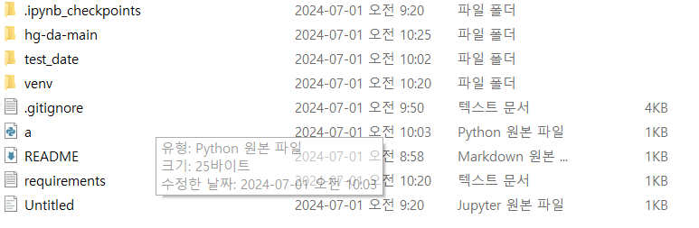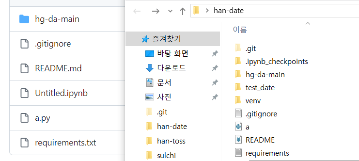 pc에서는 확인되는 test_date 파일이 git에서는 보이지 않는 것을 확인할 수 있습니다.